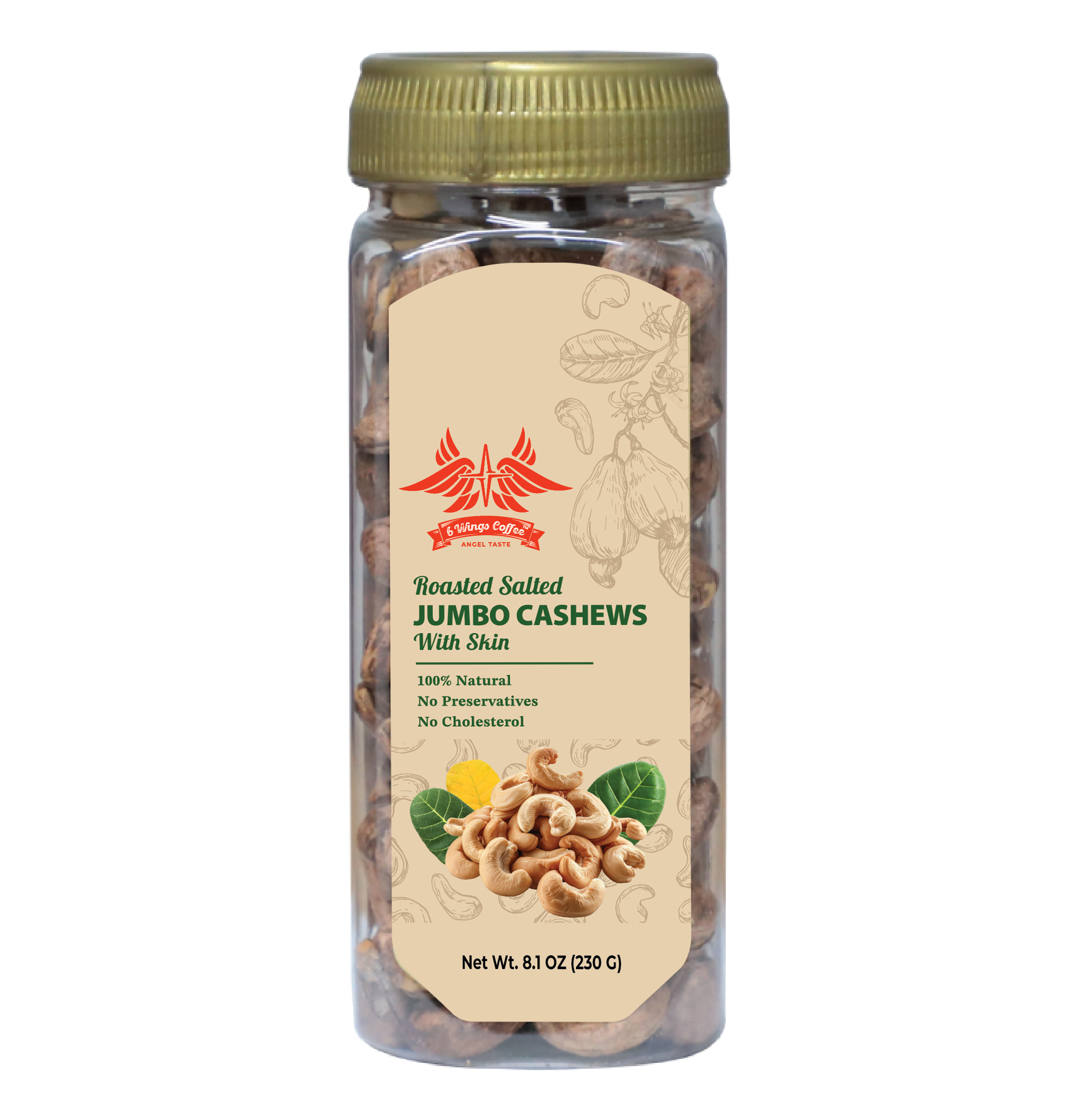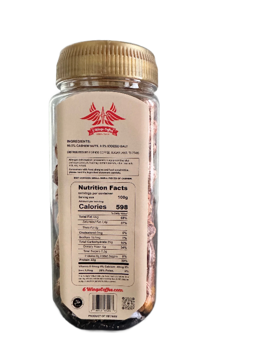 6 Wings Coffee | Vietnamese Roasted Salted Jumbo Cashews with Skin| 230 Grams| Good Source of Magnesium & Natural Fiber, Protein, Vitamin and Iron |